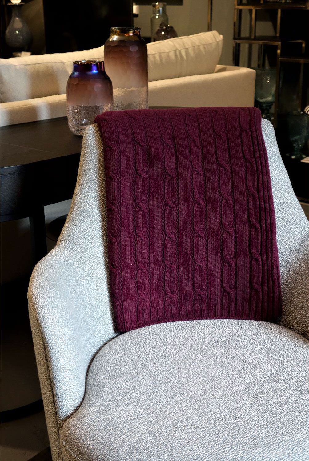 Плед «Косы». Размер: 130*170 см. Состав: 10% кашемир, 40% меринос ультратонкий, 30% вискоза, 20% РА с тактильностью кашемира. Цвет: бордо в бокале. Цена: 8000 руб.