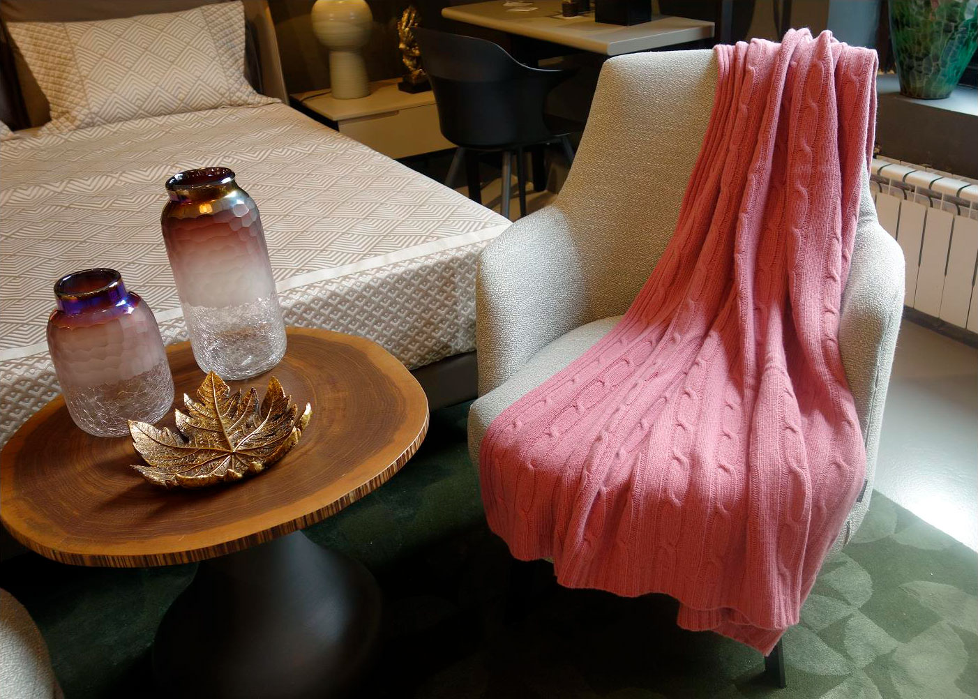 Плед «Косы». Размер: 130*170 см. Состав: 10% кашемир, 40% меринос ультратонкий, 30% вискоза, 20% РА с тактильностью кашемира. Цвет: нежно-розовый пион. Цена: 8000 руб.