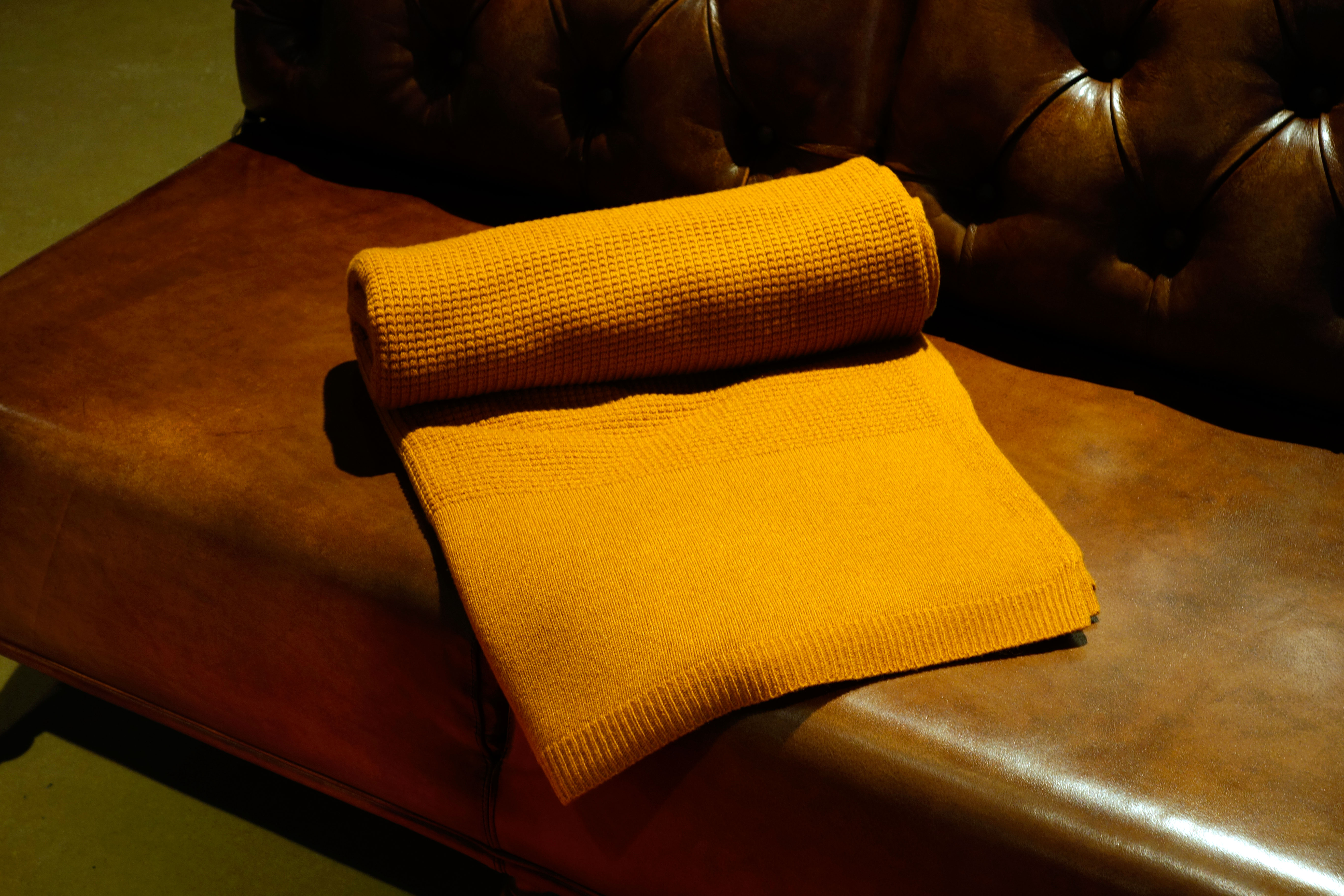 Строгий и лаконичный плед с переплетением Armani Grand может служить покрывалом. Размер: 160*200 см. Состав: 10% кашемир, 42% лана, 30% вискоза, 18% па. Цвет: горчица. Цена: 13500 руб.